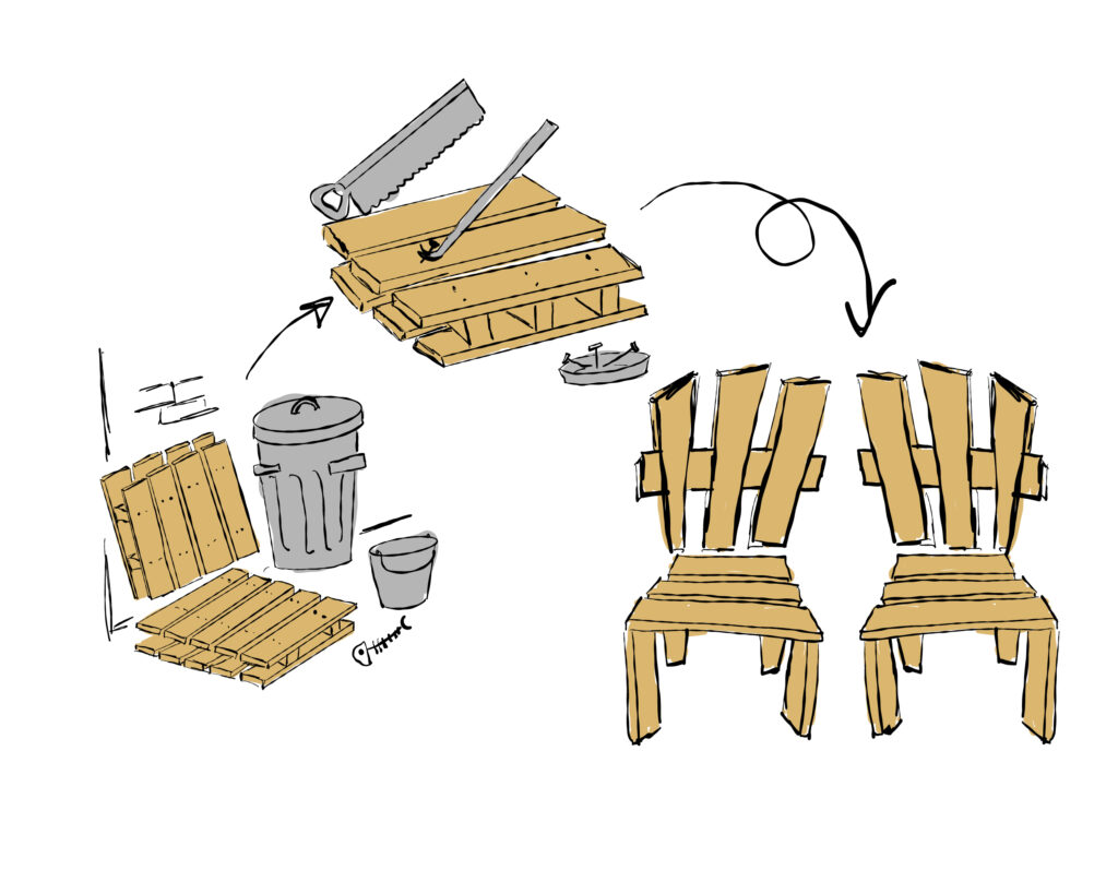 This brief explored the circular economy. I choose a style of line drawing – drawn by hand with a digital tablet, with a single block colour per illustration.