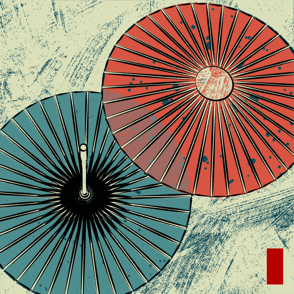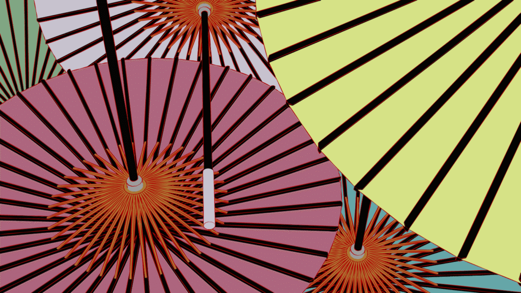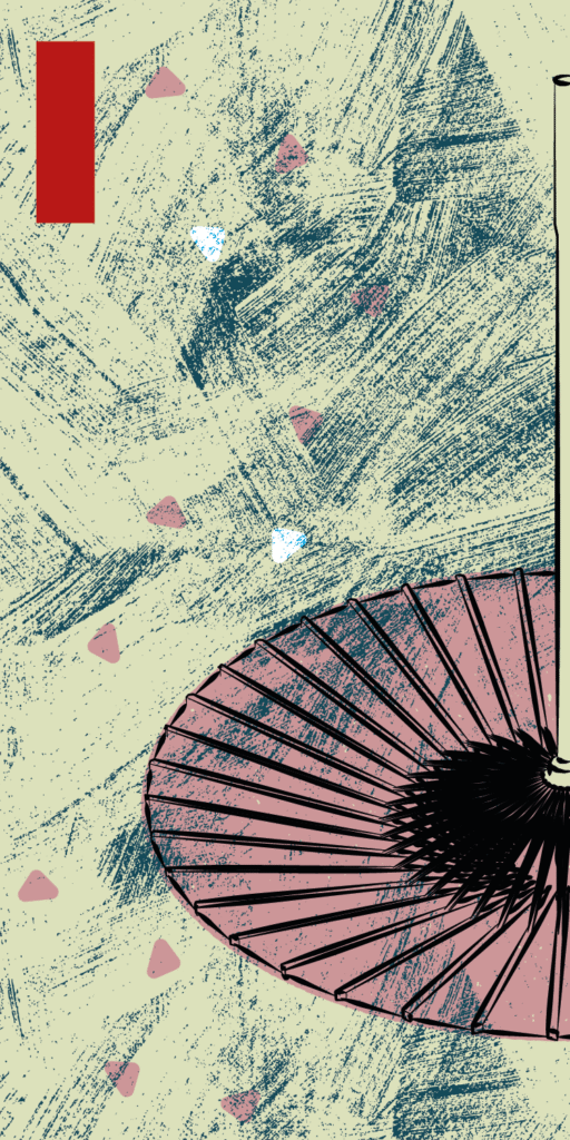 Japanese Art Style Umbrellas These illustrations were for a short series. The illustrations are a mix of flat bold colours and textured muted pastels.